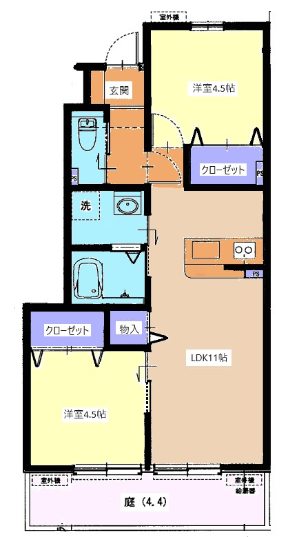 洋室 6.0帖/洋室 4.5帖/LDK 11.3帖 - 向き