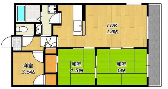 和室 6.0帖/和室 4.5帖/洋室 3.5帖/LDK 12.0帖 - 向き