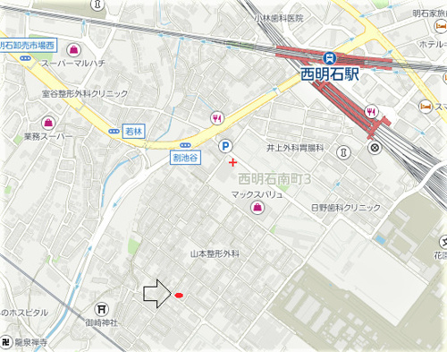 場所は明石市別所町で最寄り駅は西明石駅になりまして、駅から歩いて徒歩14分くらいの場所になります。